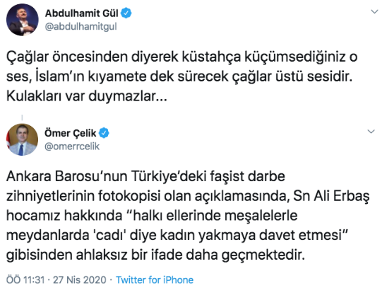 Ankara Barosu'nun açıklaması da sosyal medyada tartışma konusu oldu. Adalet Bakanı Abdulhamit Gül ve Hükümet Sözcüsü Ömer Çelik'ten şu twitler geldi.
