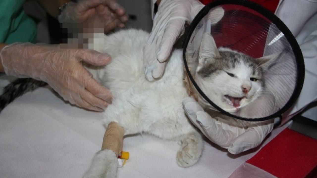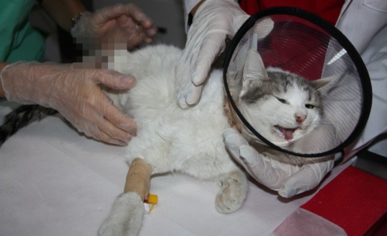 *Esra Hanım ufaklığı getirdi, getirdiğinde çok acılı bir şekildeydi. Müdahale ettik, kediyi o şekilde görünce normalde araç kazası veya bir yerde sıkıştı diye düşündük. Ama kesilen hat o kadar keskindi ki birileri tarafından kesildiği çok belirgindi.