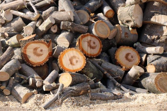Yozgat'ın Sarıkaya ilçesine bağlı Tepedoğan Köyü'nden kestiği ağaçları Boğazlıyan'ın Sırçalı Kasabasındaki işyerine doğramak için getiren Duran İlbay, bir kayısı ağacı içerisinde Türk Bayrağını andıran ay yıldızlı figürü fark etti.