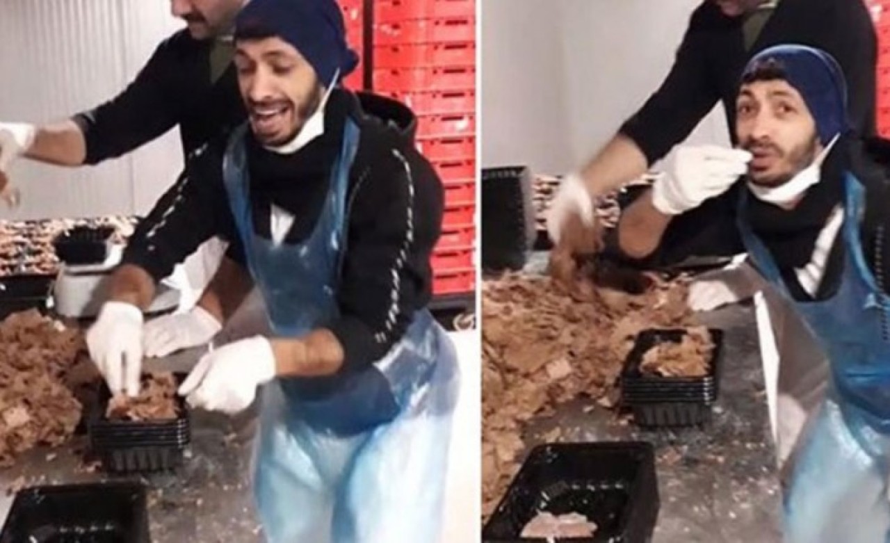 Videoda, hazır döner paketleme firmasında çalışan iki kişinin o anlarda hijyene aykırı davranışlarda bulunması yer aldı. 2 kişinin, maskesiz ve hijyene aykırı şekilde hareketlerde bulunarak çektikleri videoya yorum yağdı.