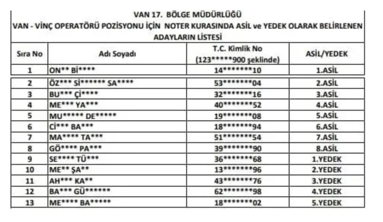Açıklanan sonuçlara göre 113 sürekli işçi kadrosu için asil ve yedek aday listeleri duyuruldu. Kura sonuçları, bölge müdürlüğü ve bağlı birimlerde istihdam edilecek adayların belirlenmesi açısından doğrudan önem taşıyor. Adaylar, kendi isimlerini asil ya da yedek listede yer alıp almadığına göre kontrol edebiliyor.