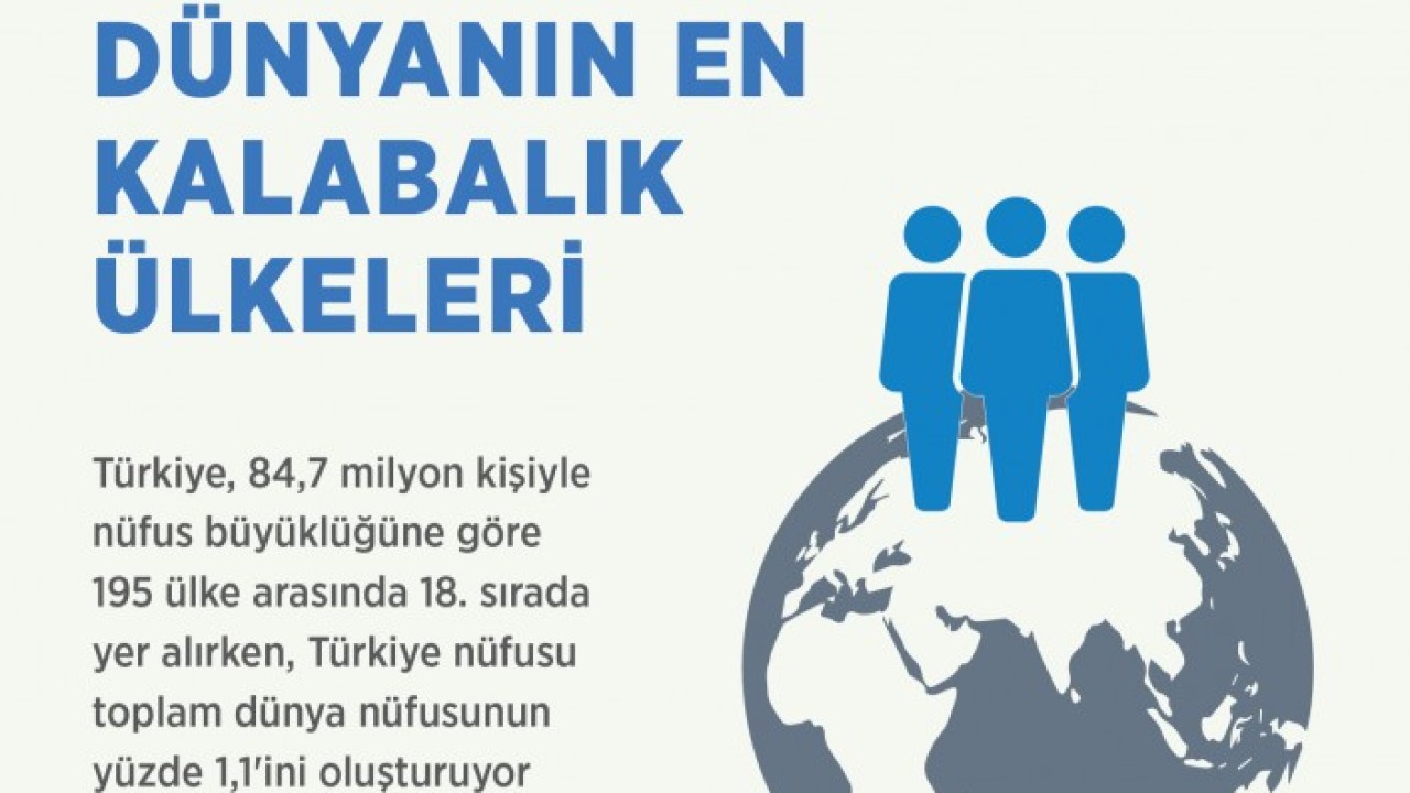 Türkiye, 84 milyon 680 bin 273 kişiyle nüfus büyüklüğüne göre 195 ülke arasında 18. sırada yer alırken, Türkiye nüfusu toplam dünya nüfusunun yüzde 1, 1'ini oluşturuyor.