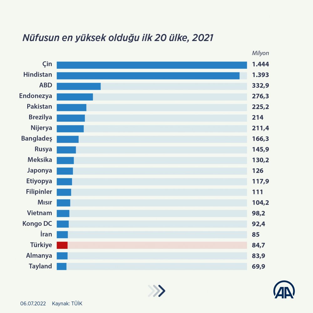 - Türkiye, nüfus büyüklüğüne göre 18'inci sırada