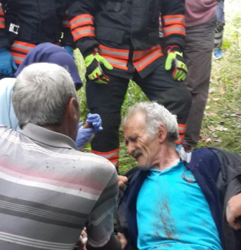 Olayı gören çevredekiler durumu jandarma ve kurtarma ekiplerine haber verdi. İhbar üzerine bölgeye sağlık ve itfaiye ekipleri sevk edildi. İtfaiye ekiplerince yıkılan evden çıkarılan Osman Levent, sağlık ekiplerinin ilk müdahalesinin ardından ambulansla Akçaabat Haçkalı Baba Devlet Hastanesi'ne kaldırıldı. Şans eseri ölümden dönen yaşlı adamın sağlık durumunun iyi olduğu belirtildi.
