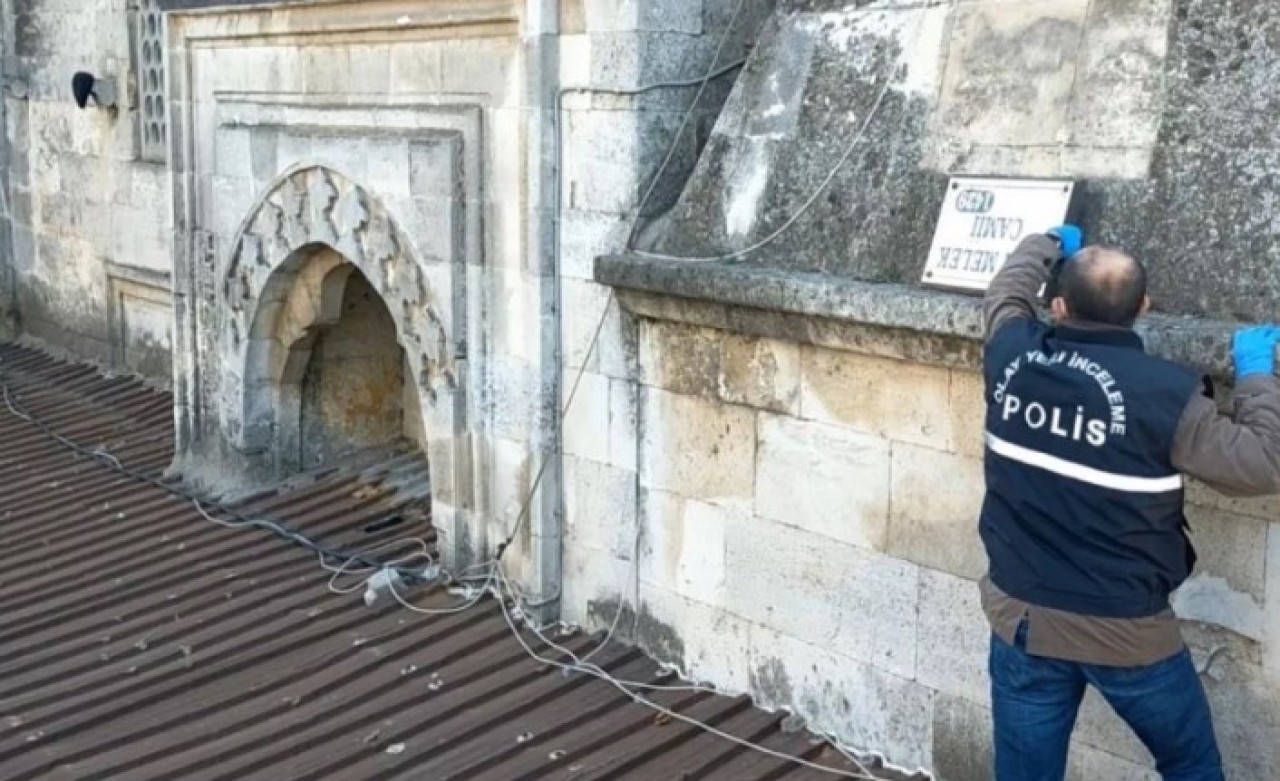 Olay yerine gelen polis ekipleri yaptıkları incelemede, caminin dış cephesinin aydınlatmalarının zarar gördüğünü, kamera açılarının değiştirildiğini, camii bahçesinde bulunan çeşmeye zarar verildiğini, caminin tabelalarının söküldüğünü ayrıca caminin dış cephesinde bulunan orta alana kasket asıldığını tespit etti.