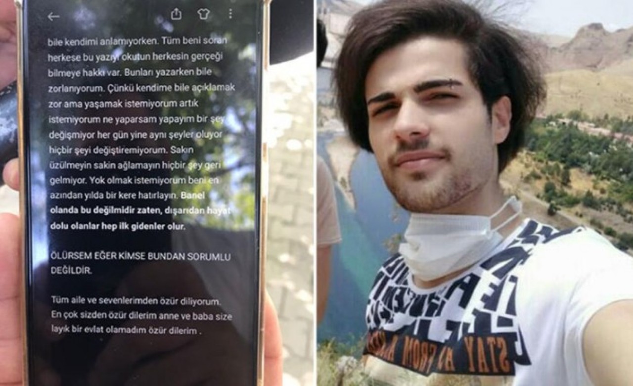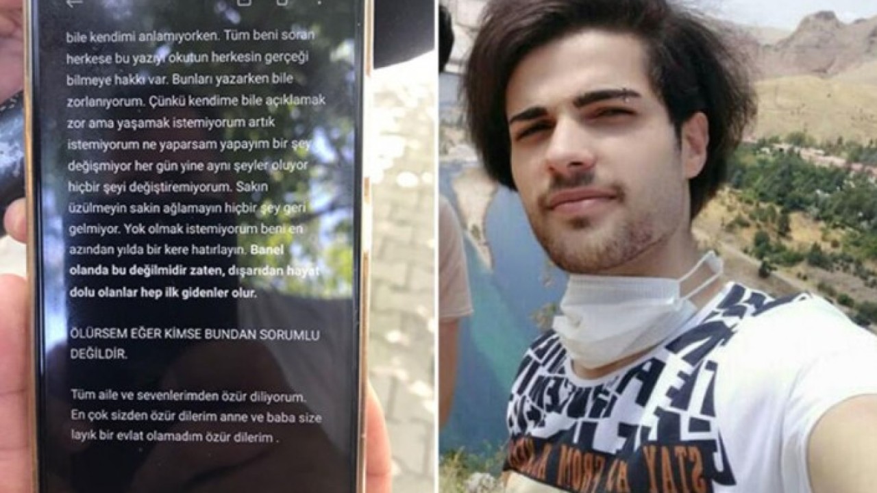 Baba Ersin Eren gözyaşları içerisinde oğlunun bıraktığı notu okudu. Notta, "Hiçbir zaman konuşkan ve derdini anlatan biri olmadım. Ama artık anlatabilirim. Ben başa çıkamıyorum artık hayat ile mutluluk ve yaşamın bu dünyada bir ev, araba ve evlilik olması kadar saçma bir şey yok. Bu yaşıma kadar yaşayan bir ölü gibiydim. Hiçbir zaman ne mutlu ne de tatmin oldum. Sadece siz öyle olduğumu sandınız. Şimdi belki mutlu olacağım bir yere gitmek beni umutlandırıyor. Kimse ne beni düşünsün ne de arkamdan ağlasın. Beni sevenlerden ve ailemden özür diliyorum. Son çare bu mecburum. Çünkü yaşadıkça daha çok acı çekiyorum. Biliyorum, 2-3 gün konuşulup unutulacağım. Ardımdan bu yazıyı okuyun ki belki beni anlarsınız. Ben bile kendimi anlamıyorken. Tüm beni soran herkese bu yazıyı okutun. Herkesin gerçeği bilmeye hakkı var. Bunları yazarken bile zorlanıyorum. Çünkü kendimi bile açıklamak zor ama artık yaşamak istemiyorum. İstemiyorum ne yaparsam yapayım hiçbir şey değişmiyor. Her gün yine aynı şeyler oluyor. Hiçbir şeyi değiştiremiyorum. Sakın üzülmeyin sakın ağlamayın. Hiçbir şey geri gelmiyor. Yok olmak istemiyorum. Beni en azından yılda bir kez hatırlayın. Dışardan hayat dolu olanlar hep ilk giden olur. Ölürsem eğer kimse bundan sorumlu değildir. Tüm aile ve sevenlerimden özür diliyorum. En çok sizden özür diliyorum. Anne ve baba size layık bir evlat olamadım, özür diliyorum" ifadeleri yer almıştı.