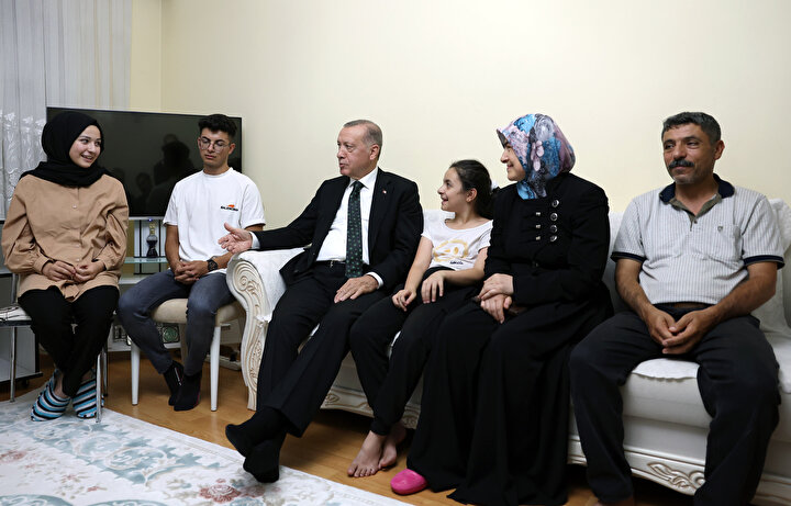 Çaşmaz ailesinin çay davetini geri çevirmeyen Erdoğan, ailenin evine misafir oldu, ziyarette renkli diyaloglar yaşandı