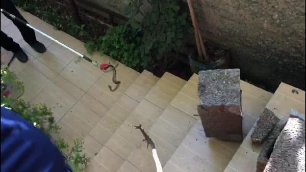Yeşilkent Mahallesi, Zeybek Sokak'taki evin bahçesine giren yılan, burada oturan aileyi korkuttu. Haber verilmesiyle eve gelen itfaiye ekibi, mandal tipi tutacakla yılanı yakaladı. Yılan, evin dışında doğal yaşamına bırakıldı. Evde yaşayanlar, itfaiyeye teşekkür etti.