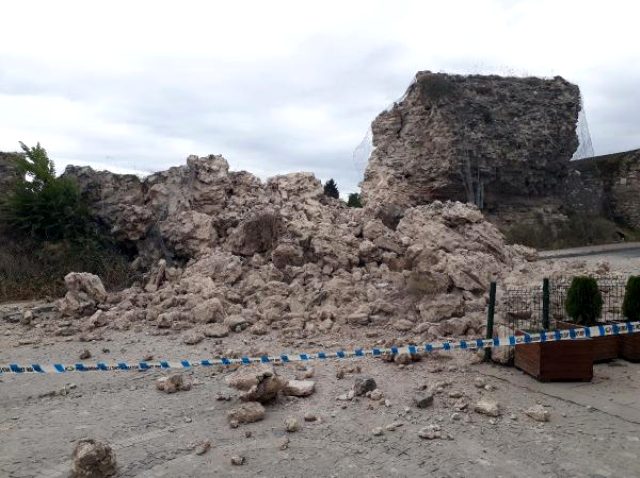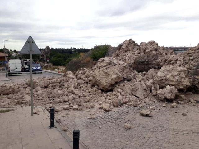 Karagümrük Mahallesi Kaleboyu Caddesi'nde tarihi surların bir bölümü gece saatlerinde çöktü. Surlardan kopan parçalarının bir bölümü yola düşerken, surun bir kısmı da arka kısımdaki yeşil alana savruldu.