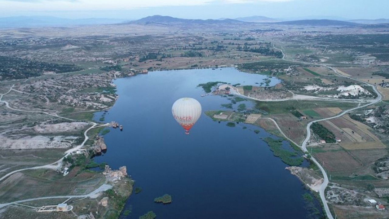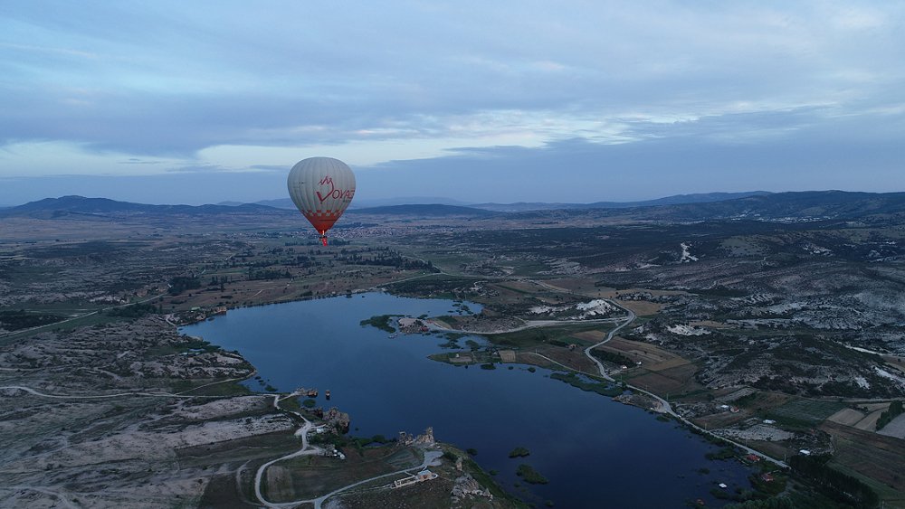 Emre Gölü etrafında yapılan ilk sıcak hava balonu uçuşu başarıyla tamamlandı.