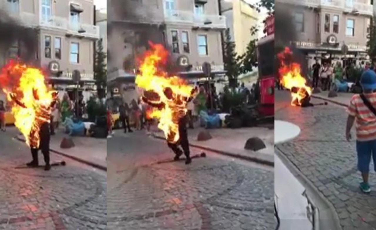 Beyoğlu Galata Kulesi Meydanı Büyük Hendek Caddesi üzerinde önceki gün saat 19.30 sıralarında meydana gelen olayda, eline plastik bir orak alan 28 yaşındaki Abdullah Cihat Turan Pekpak, kıyafetine önce tiner döktü ardından da kendini ateşe vermişti. Bir anda yanmaya başlayan genç adeta alev topuna dönmüştü. Görenleri şoke olduğu olayda yanan gence çevredeki esnaf yangın söndürme tüpüyle müdahale etmişti.