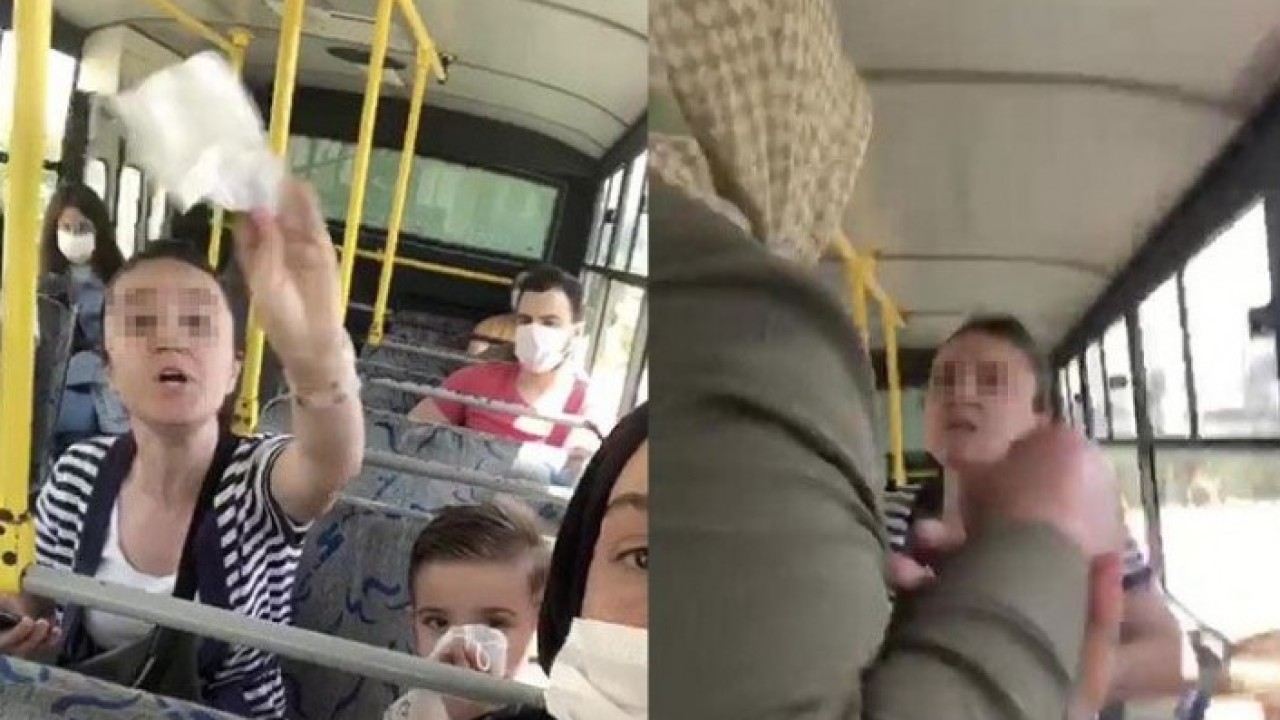 Kadın ise elindeki maskeyi kadına doğru sallayarak, "Bak takmıyorum" dedi. Sürücünün, suçlu olduğunu söylediği kadın, "Kimi çağırırsan çağır" diye konuştu. Kadın daha sonra ayağa kalkarak, ön koltukta oturan kadınlara küfredip, saldırdı.