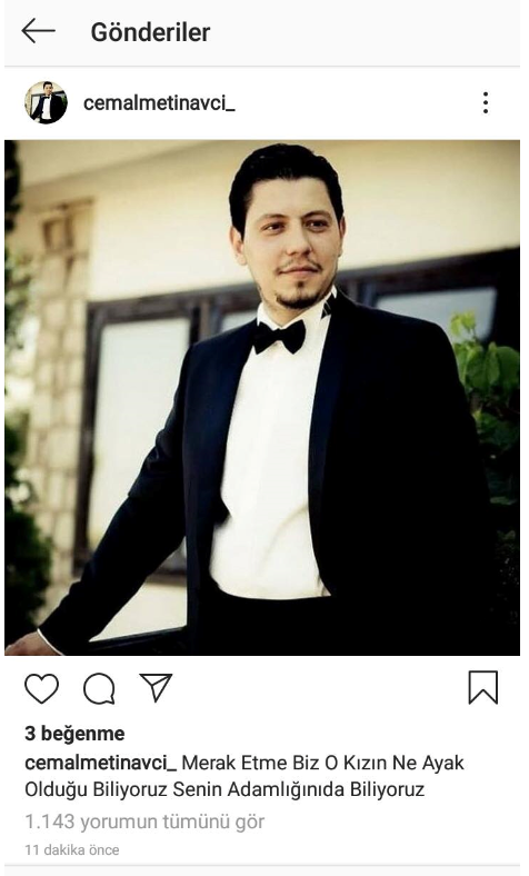 Cani katili savunan sayfanın Avcı'nın fotoğraflarını paylaşarak 'Merak etme biz o kızın nasıl bir ayak olduğunu biliyoruz, senin adamlığını da biliyoruz' yazıldı.