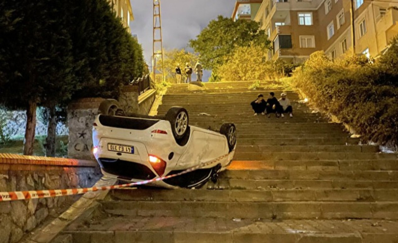 Sokaktaki merdivenleri fark edemeyen Osman Karaoğlan'ın kullandığı otomobil, taklalar atarak duvara çarptı. Karaoğlan şans eseri kazadan yara almadan kurtuldu.