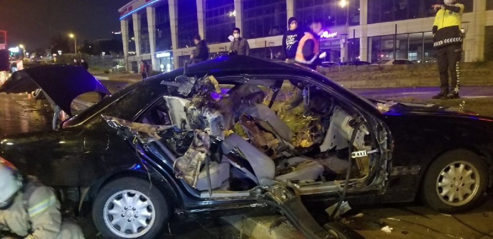 İstanbul Kartal'da feci bir kaza meydana geldi. Direksiyon hakimiyetini kaybeden sürücü bariyerlere çarptı. Şoför ve yolcunun ayakları koptu