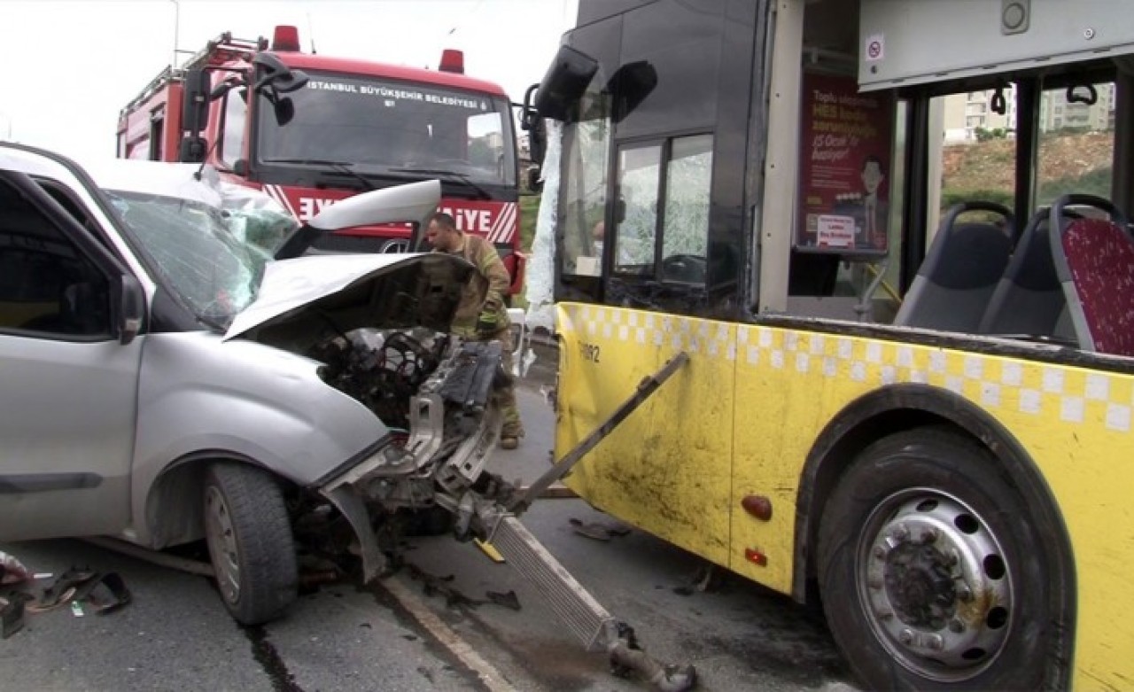 Bugün saat 8.15 sularında İstanbul Başakşehir Güvercintepe İstiklal Caddesi üzerinde cadde üzerinde seyir halinde olan R.E. kontrolündeki İETT otobüsü ile Şükrü Korkmaz kontrolündeki ticari araç kafa kafaya çarpıştı.