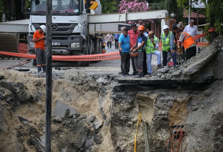 Çöken caddede ağaçlar da çukura düştü. Caddenin çökmeden kısa süre önce trafiğe kapatıldığı öğrenildi. Çökmenin meydana geldiği yolda inceleme devam ediyor.