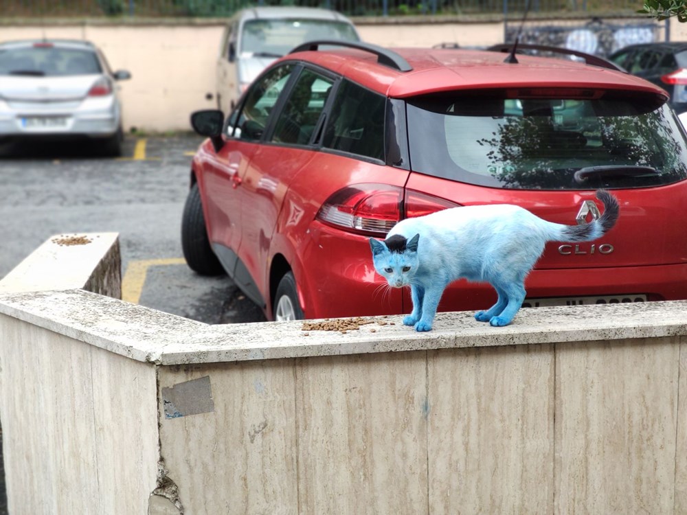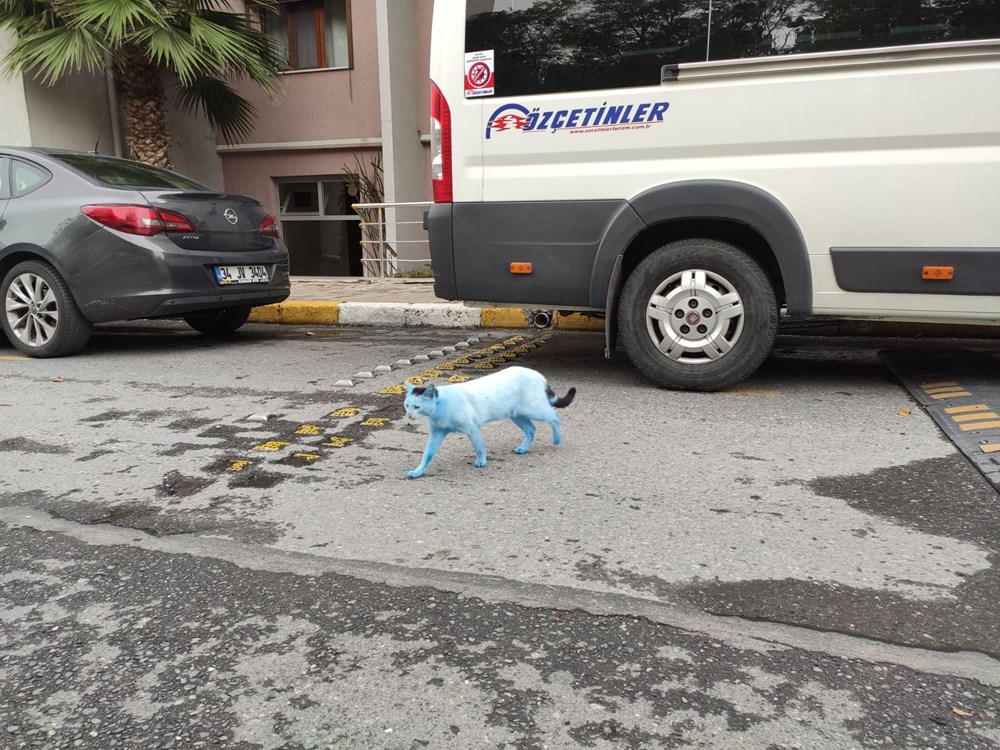 İstanbul Halkalı’da maviye boyanmış çok sayıda kedi görenleri şaşırttı. Edinilen bilgiye göre, kimliği belirsiz kişilerce bir sitenin otoparkına mavi boya döküldü.