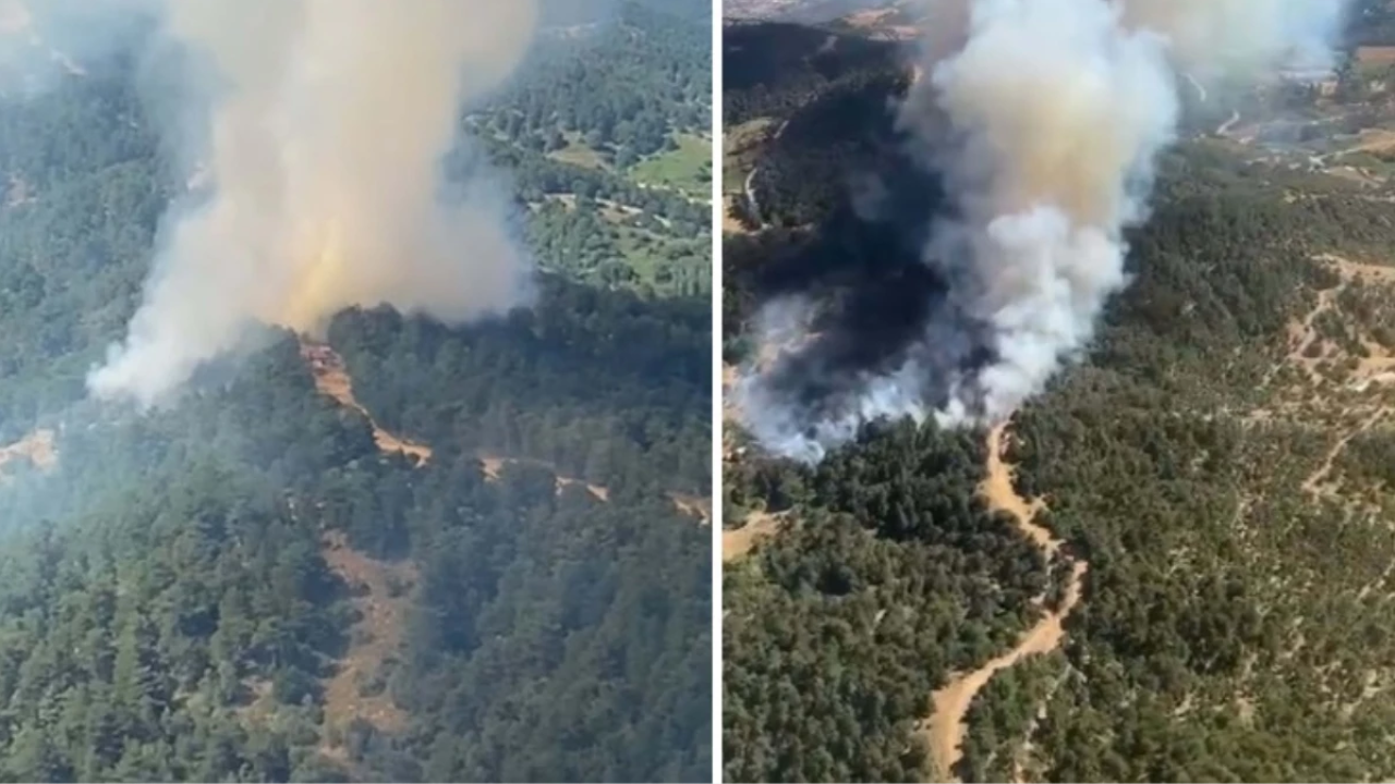 Yangının 15.35'te çıktığı ve ilk müdahalenin de 15.45'de yapıldığı belirtildi. Ekiplerin, havadan ve karadan müdahale ettikleri yangını kontrol altına alma çalışmaları sürüyor.