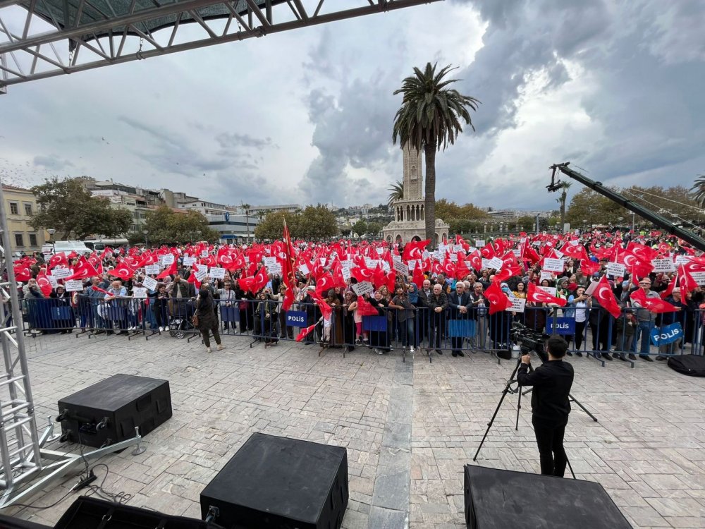 Konak Meydanı bir bayramlaşma yeriydi sanki. Türküler, şarkılar eşliğinde kadın, erkek, çocuk 7’den 70’e tek bir ağızdan “Aile için burdayız! Ailelerimizi koruyacağız! LGBT dayatmasına karşı sessiz kalmayacağız” diye haykırıyordu.