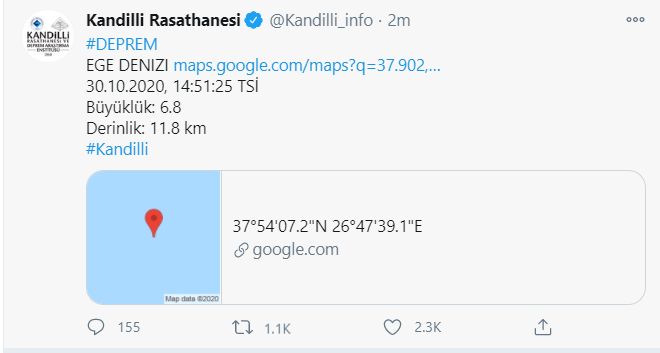 İzmir'in Seferihisar ilçesi açıklarında 6.8 büyüklüğünde deprem oldu. Deprem sonrası Buca ve Bayraklı'da bazı binalar yıkıldı.
