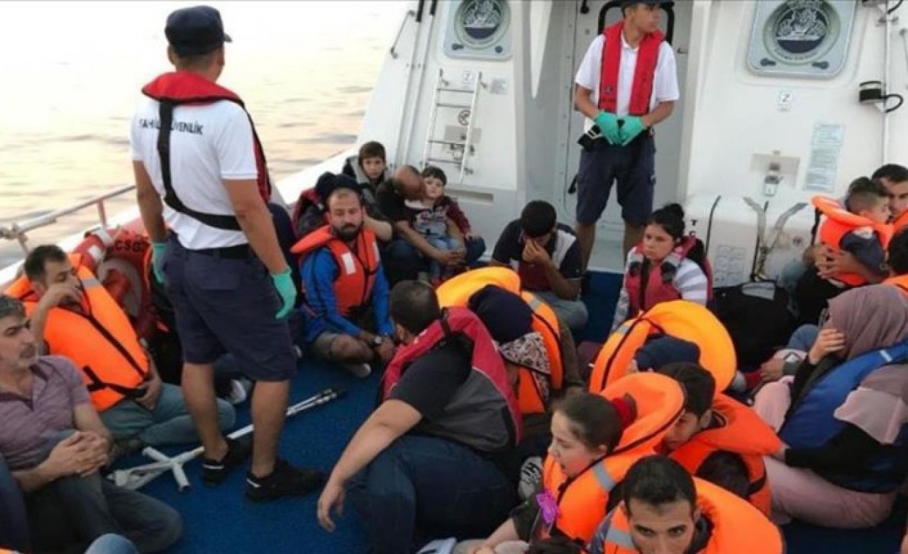 Yunanistan unsurlarınca Türk Karasularına geri itilen lastik bottaki 19 göçmen kurtarıldı.