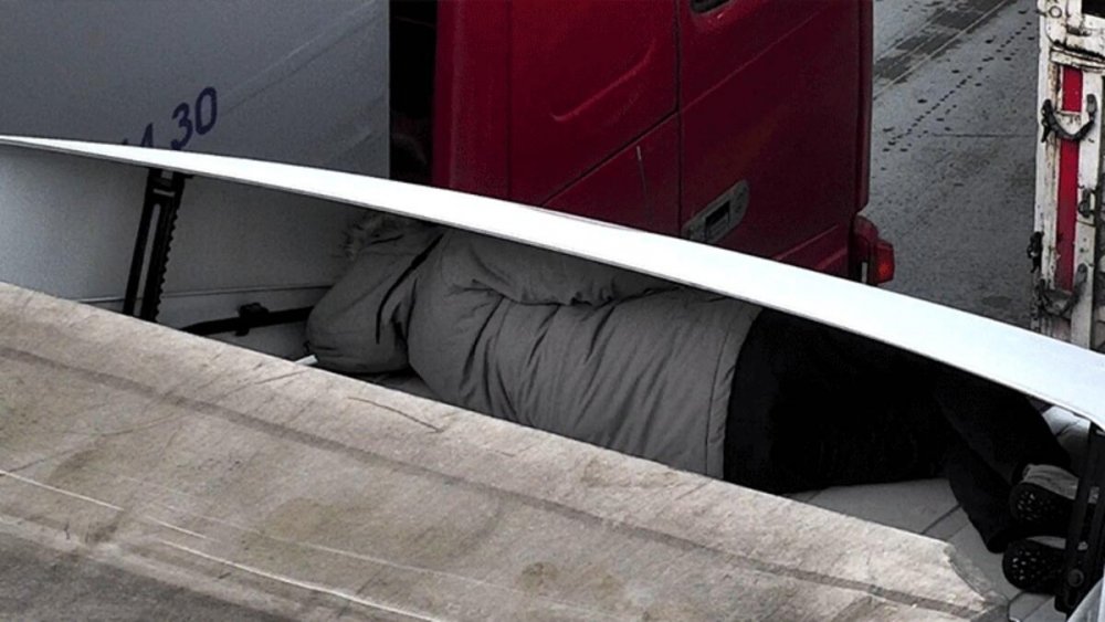 Koroınavirüs tedbirleri kapsamında yaya geçişine kapatılan Artvin’in Sarp Sınır Kapısı’nda, TIR’ın üzerinde rüzgarlığın olduğu bölüme saklanıp, Türkiye’ye yasa dışı girmeye çalışan B.Ç. (39) yakalandı.