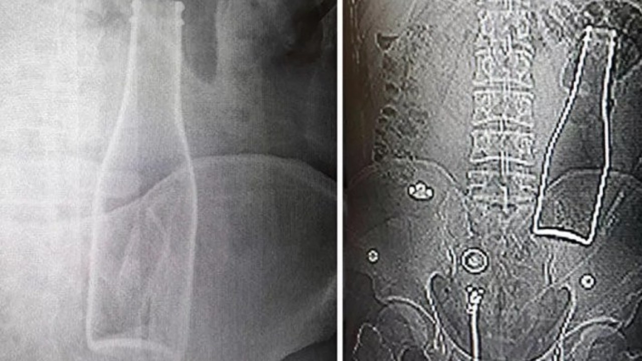 Bunun üzerine röntgen filmi çekilen gencin kalın bağırsağında şişe olduğu görüldü. Makattan girdiği belirlenen şişe, yaklaşık bir saat süren ameliyatla çıkarıldı.