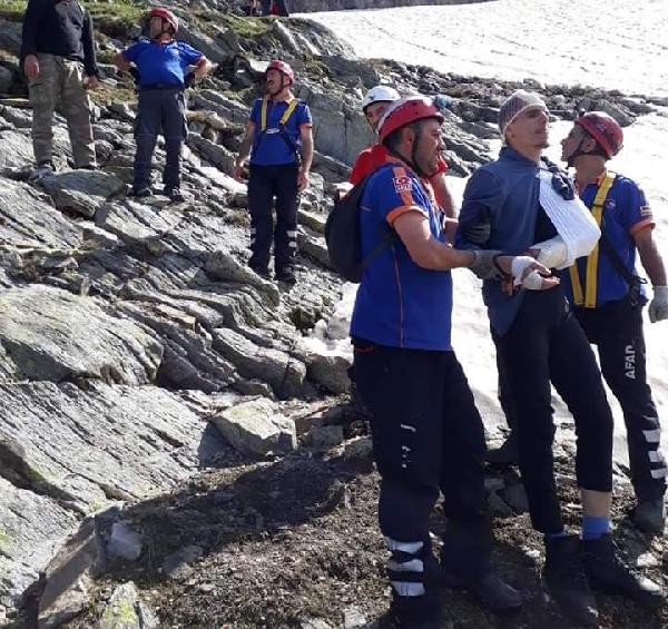 Arnavutluk’tan Bursa’ya gezmeye gelen Arlinu Salihu, Advar Xhabafti, Shkodran Yashari ve Yıly Xhar, dün Uludağ tırmanış gerçekleştirdi. Geceyi zirvede kurdukları kampta geçiren 4 turist dağcı, bu sabah Göller Bölgesi’ne dönmek üzere inişe geçti. kayalık bölgede birbirlerine tutunarak indikleri sırada gruptan 2 dağcı, kayarak yaklaşık 5 metre yük seklikten düştü. Olayda Arlinu Salihu ve Advar Xhabafti’nin ayak ve kafalarında kırıklar oluşurken, Shkodran Yashari ve Yıly Xhar durumu jandarma ekiplerine bildirdi.