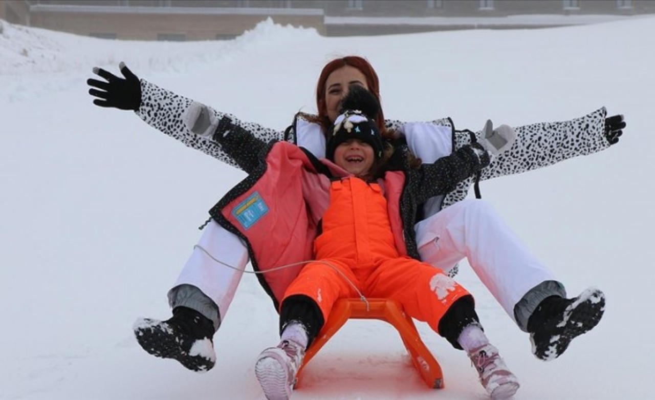 Yarıyıl tatili için Kartalkaya'ya gelen tatilciler, kar kalınlığının 1 metre olduğu Türkiye'nin en uzun 25 pistinde, kayak ve snowboard yaparak eğleniyor.