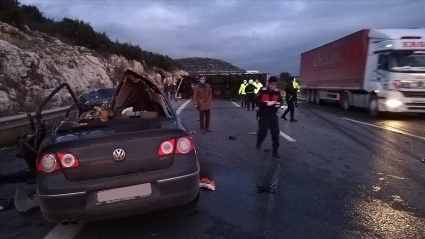 MERSİN (AA) - Pozantı-Ankara otoyolunun Tarsus mevkisinde kamyon ve otomobilin çarpışması sonucu ilk belirlemelere göre 5 kişi hayatını kaybetti, 2 kişi yaralandı.