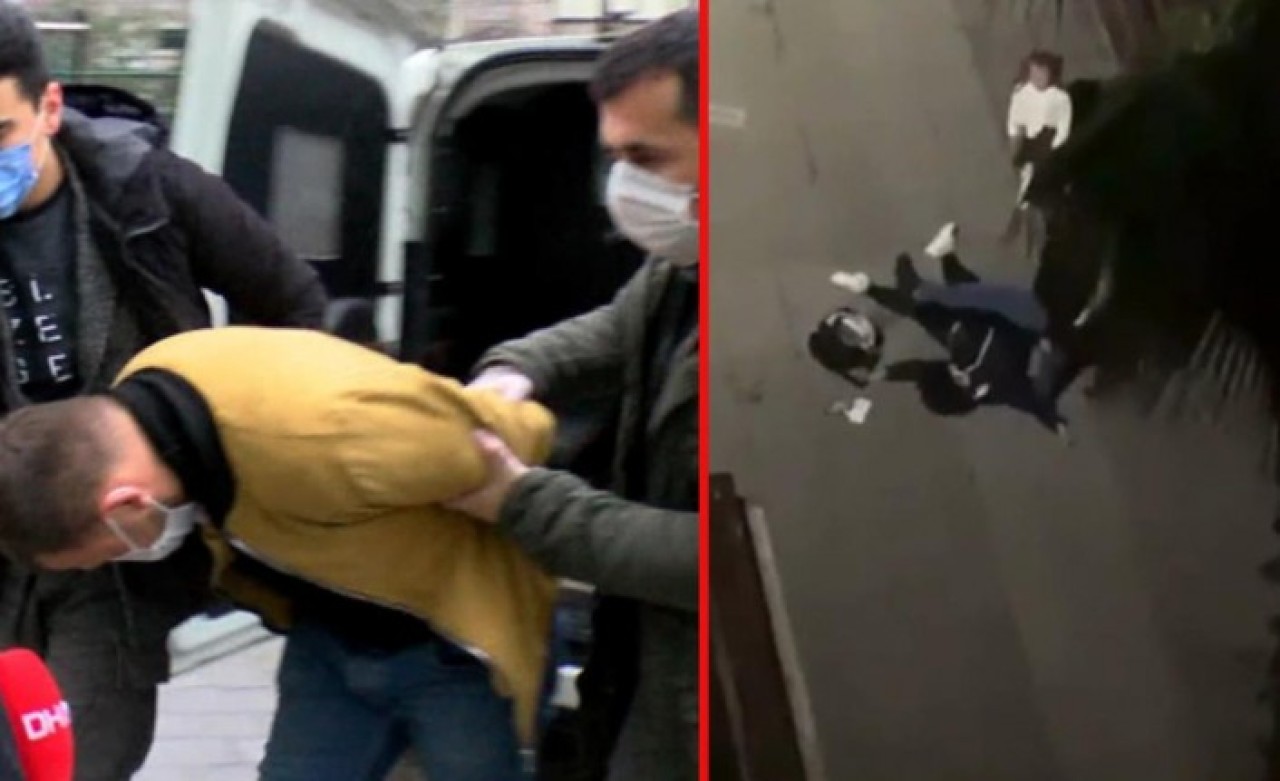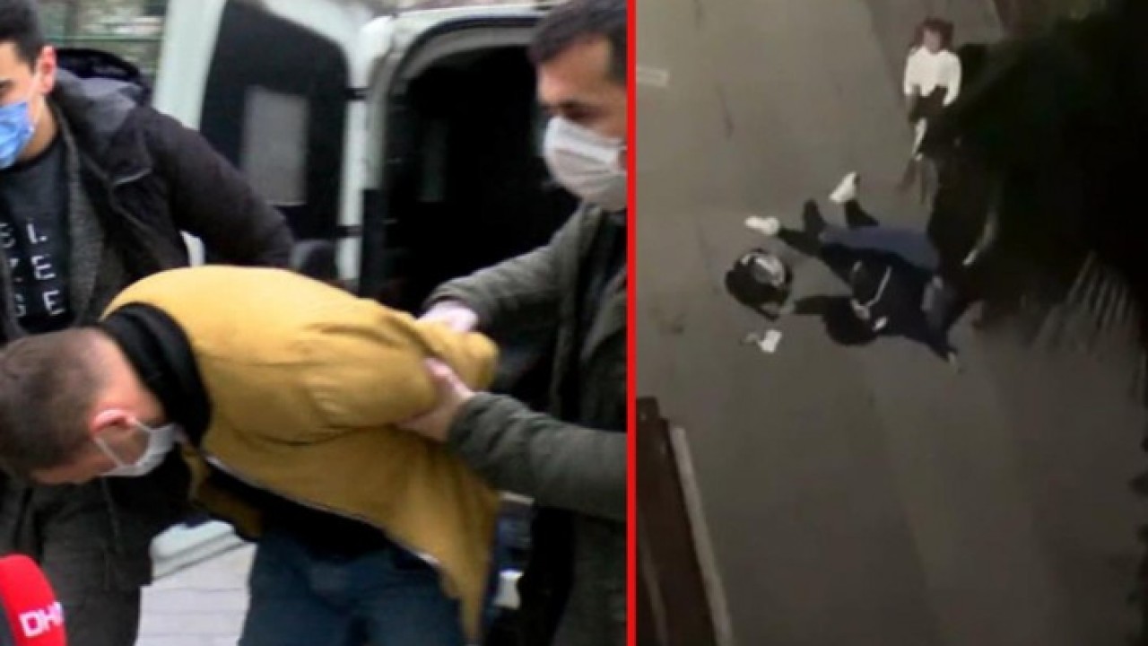 Görüntülerde çevredekilerin evlerinin penceresinden bağırmasına, küçük kızının da anne diyerek ağlamasına aldırmayan saldırganın, yerde yatan eşine art arda tekmeler savurduğu, başını da yere çarptığı görüldü.