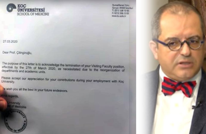Canlı yayın sırasında gelen bir maille kovulduğunu açıklayan Çilingiroğlu'na Koç Üniversitesi'nden yanıt geldi. Üniversite, Çilingiroğlu'nun sözleşmeli bir kadrosunun bulunmadığını, misafir öğretim üyesi konumunun da ocak ayında görevinin sona erdiğini belirtti.