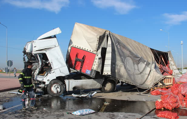 Bahri A. idaresindeki 02 HP 383 plakalı tır, Konya-Aksaray kara yolu Tümosan Kavşağı'nda, sürücüsünün kimliği henüz belirlenemeyen 42 FIK 90 plakalı işçi servis otobüsü ile çarpıştı.