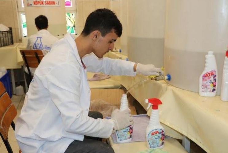 50 temizlik ürünü üretilen okulda, corona virüse karşı yeni bir çalışma başlatıldı. Anti bakteriyel özelliği artırılmış 21 yeni temizlik ürünü üretildi.