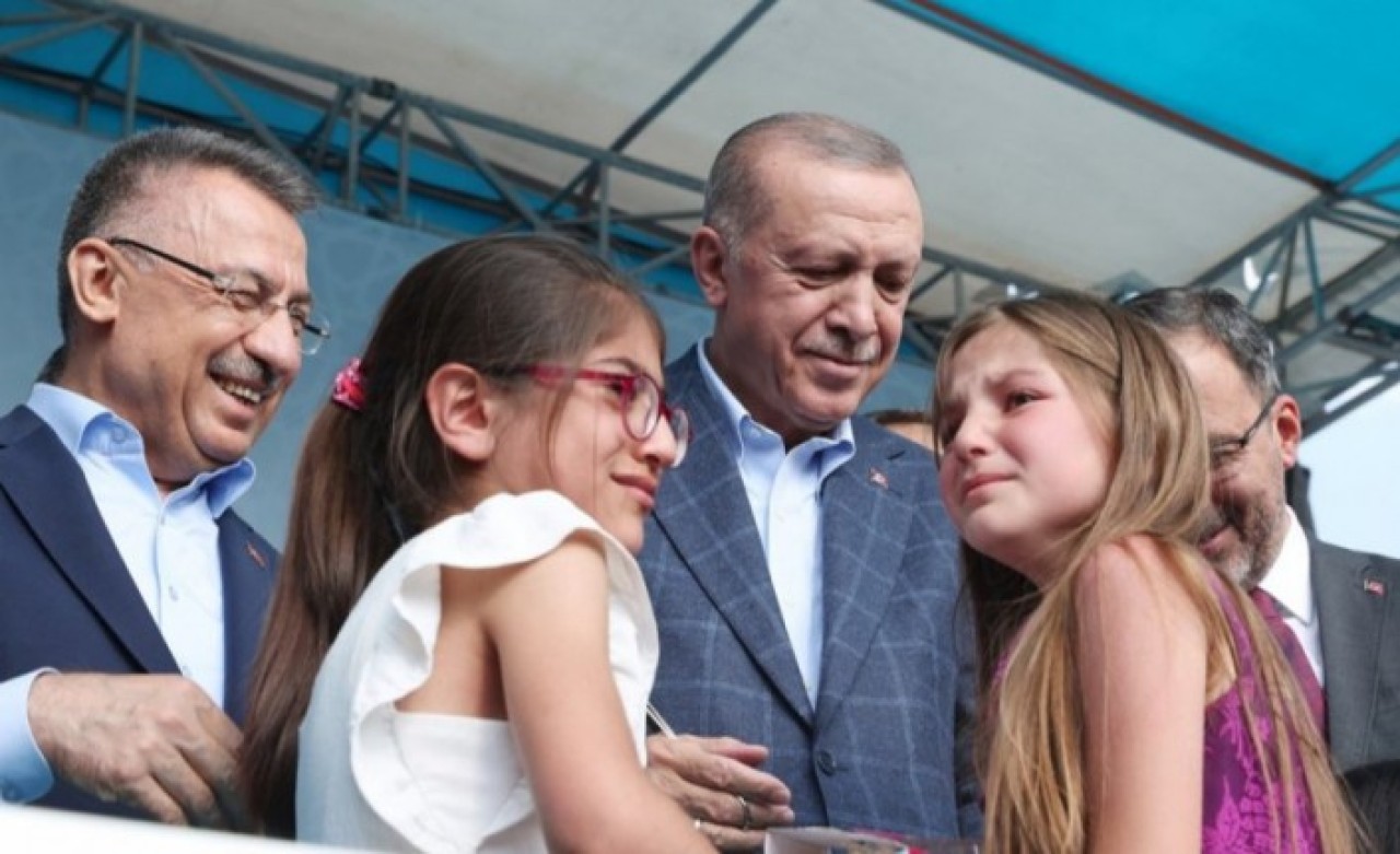 Erdoğan, kurdele kesim esnasında kendisini çok sevdiği söyleyen küçük kızları "Ağlamak yok, cici kızları alalım buraya" diyerek sahneye davet etti.