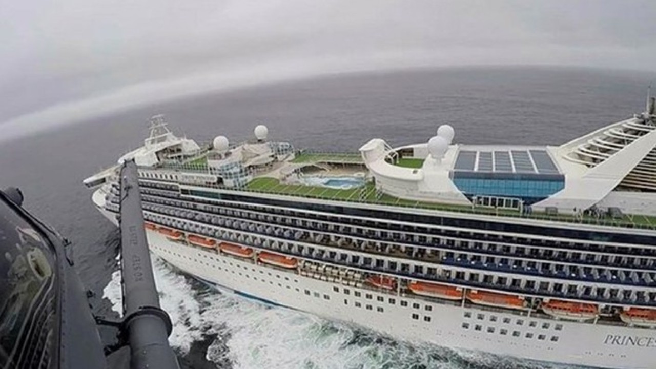 Bazı yolcular odalarına kapanırken, koronavirüse maruz kaldığından şüphe edilen yolculara test yapılması için California Ulusal Güvenlik görevlileri helikopter ile gemiye Kovid-19 test kiti bıraktı.