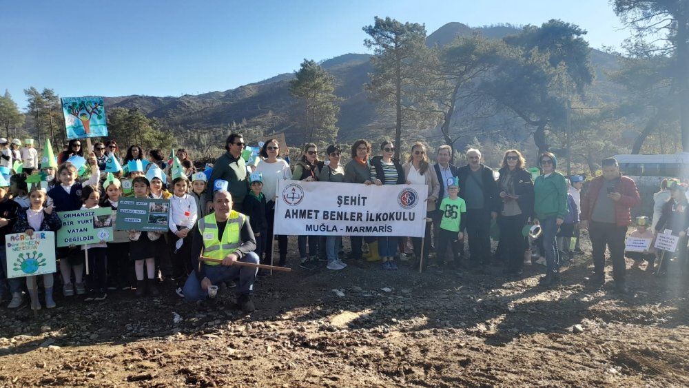 Muğla'nın Marmaris ilçesinde ilkokul 2. sınıf öğrencileri, orman yangınlarında zarar gören alanların yeniden yeşermesi için 4 bin 250 tohum topunu doğa ile buluşturdu.