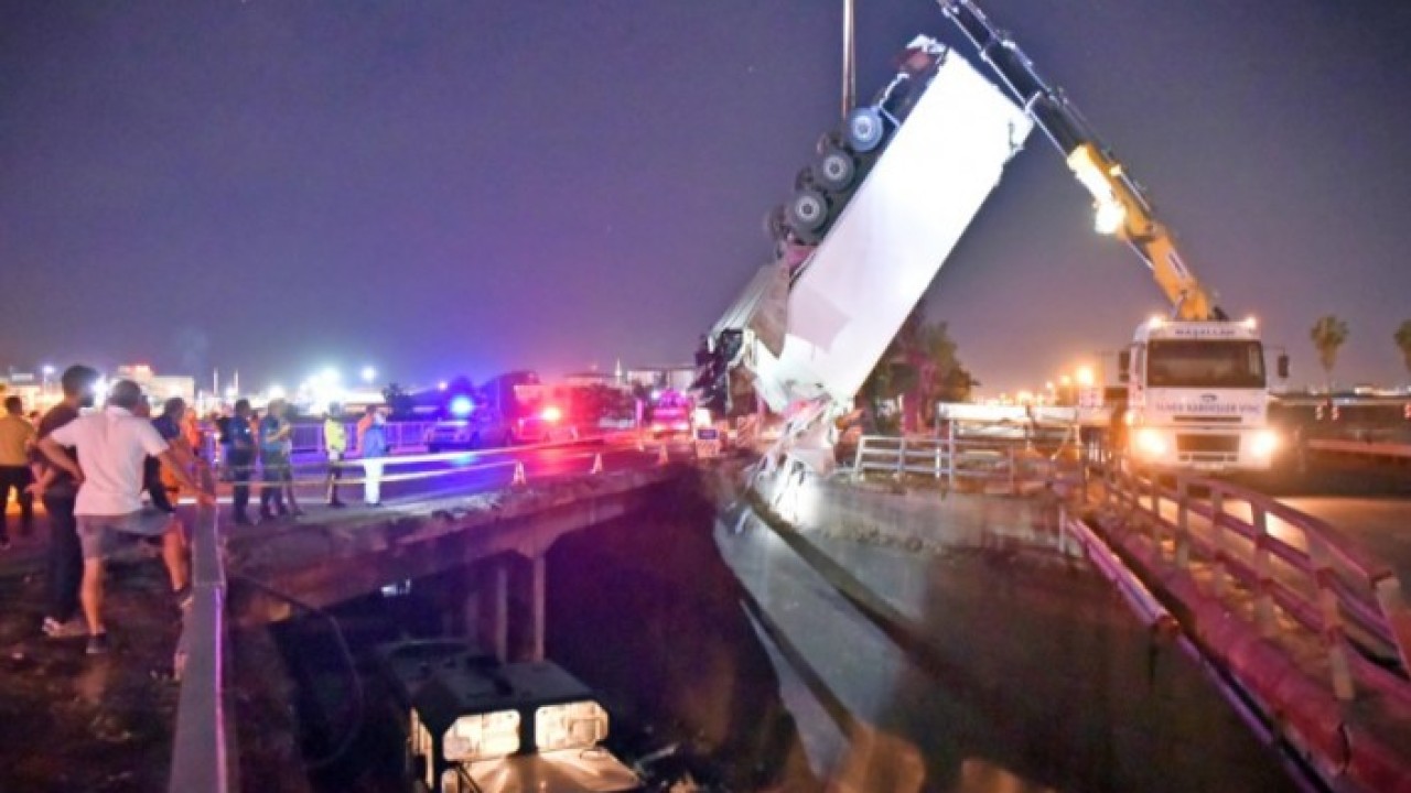 Yaklaşık 10 metrelik yükseklikten tırın dorsesi, raylarda hareket halindeki yük treninin üzerine düştü. Dorseden ayrılan tır ise rayların diğer tarafına devrildi.