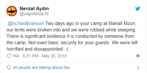 Yemeksepeti’nin kurucusu olan teknoloji girişimcisi Nevzat Aydın’ın ünlü iş insanı Richard Branson’a ait safari kampında soyulduğu attığı tweet ile ortaya çıktı.
