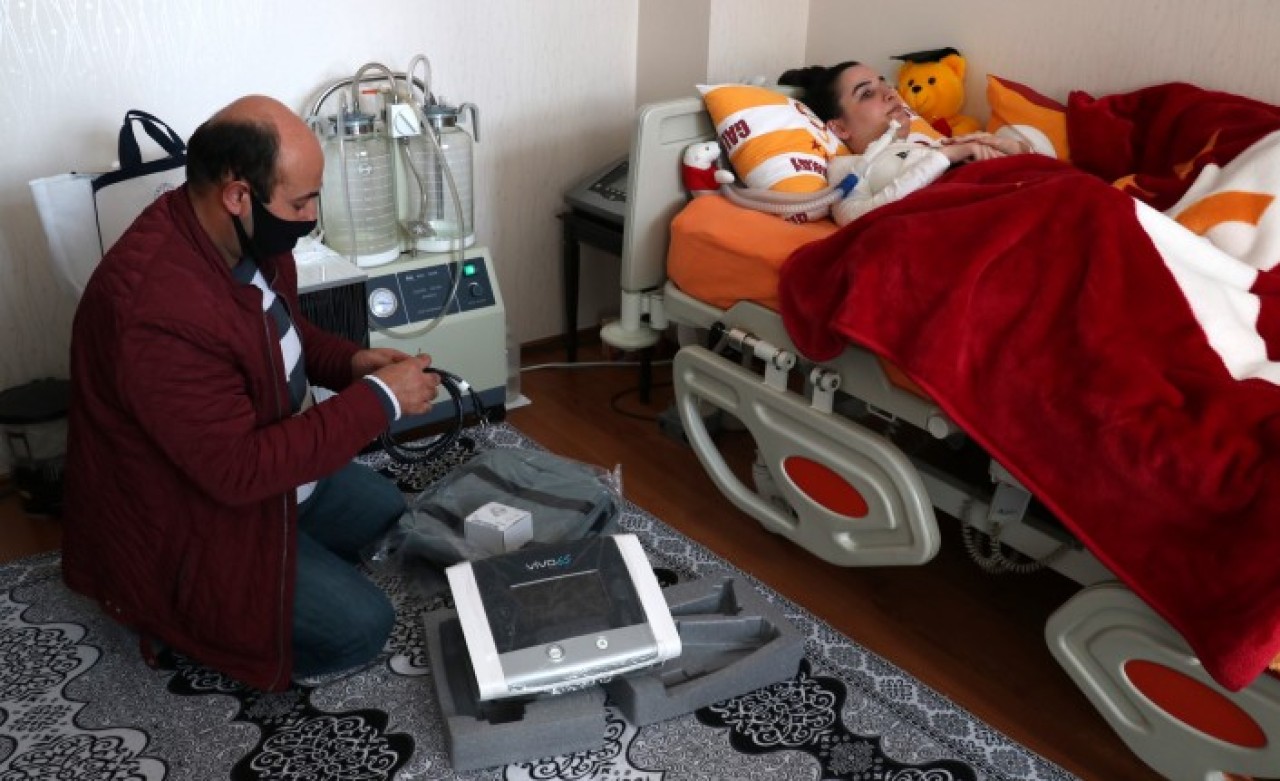 Elazığ Belediyesince, kas hastalığı nedeniyle fiziksel yetisini yüzde 99 kaybeden ve akciğerleri işlevini yitirdiği için solunum cihazına bağlı yaşayan Nurçin Arlı'ya (31) solunum cihazı hibe edildi.