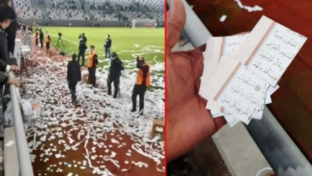 Durumu fark eden vatandaşlar, Emniyet görevlilerine haber verdi. Polisler, stat çalışanları ve bazı taraftarlar yerdeki Kur'an sayfalarının yer aldığı kağıt parçalarını topladı.