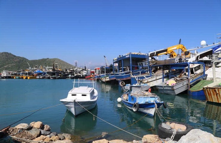 Gazipaşa Yat Limanı'na sığınarak havanın düzelmesini bekleyen balıkçılar, boş zamanlarını ağlarını onararak ve gemilerine bakım yaparak geçiriyor.