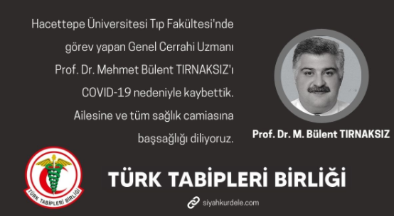 Tırnaksız'ın ölümünü Türk Tabipleri Birliği duyurdu.