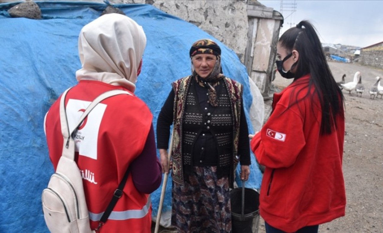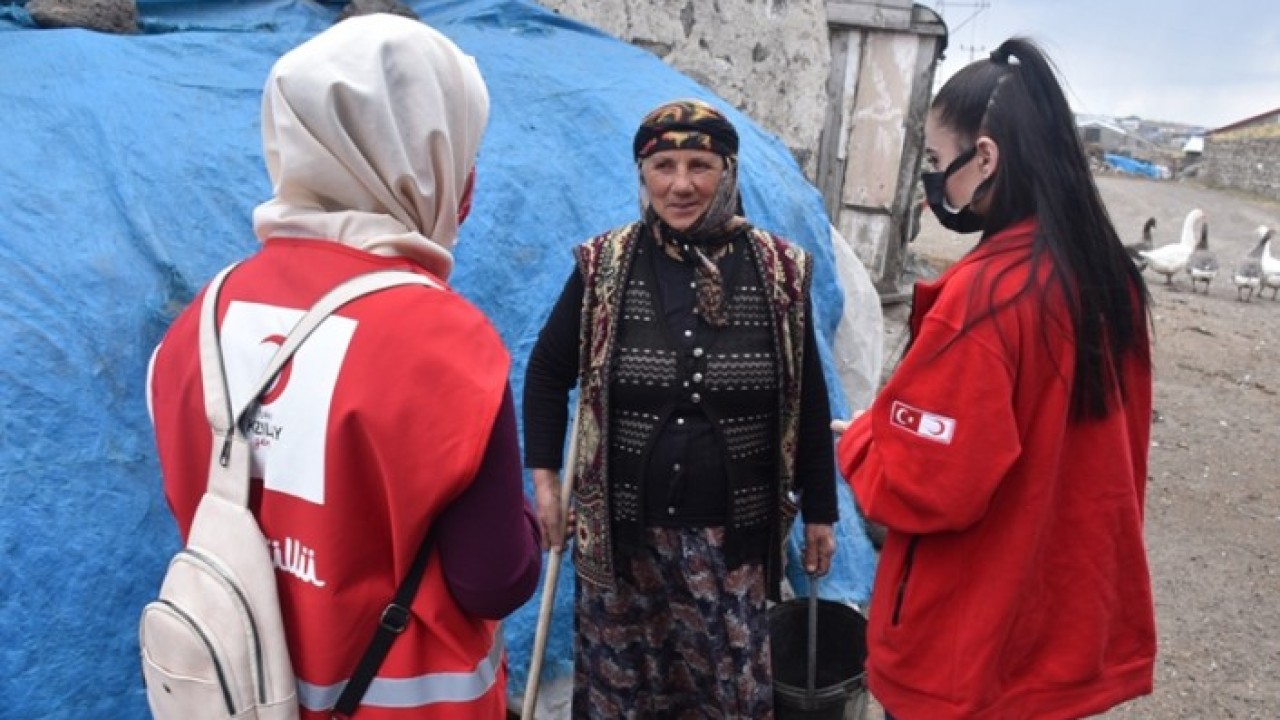 Türk Kızılay ekibi de sağlık çalışanlarına destek olmak için onlarla köylere gidip aşı olanlara ikramlarda bulunuyor.