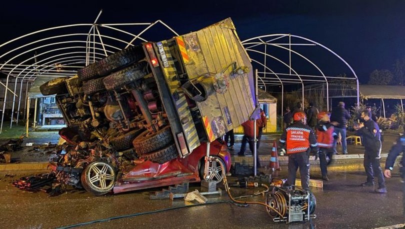 Freni patladığı belirtilen kamyon, karşı şeritten gelen Hakan Altun (30) idaresindeki 06 EMK 60 plakalı otomobil ile Eray Demircan'ın kullandığı 34 ZTK 73 plakalı otomobilin üzerine devrildi.