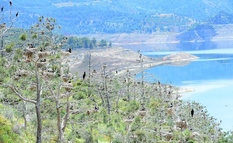 Bölgede gölü çevreleyen dik yamaçlardaki çam ağaçlarına kurulu yuvalarda yüzlerce yavrunun hayata tutunmaya çalıştığını belirten Tekin, şöyle konuştu: