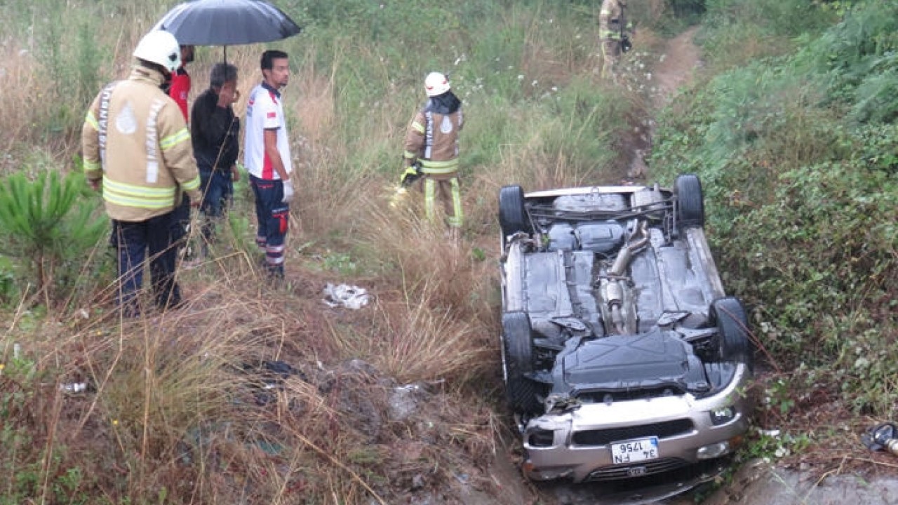 Alınan bilgiye göre, Şile Yolu Koçullu Mevkisi'nde, İstanbul istikametine seyir haline olan Erkan Y. (41) idaresindeki 34 FN 1756 plakalı araç, yağış nedeniyle kayganlaşan yolda, sürücünün direksiyon hakimiyetinin kaybetmesi sonucu, bariyerleri aşarak şarampole yuvarlandı.