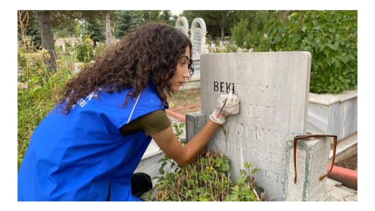 Sivas Gençlik Merkezi'nden yapılan açıklamaya göre, gençlik liderleri ve gönüllülerden oluşan 15 kişilik ekip, Yukarı Tekke Mezarlığı'nda üzerindeki yazıları silindiği için okunması güç olan mezar taşları için kolları sıvadı.
