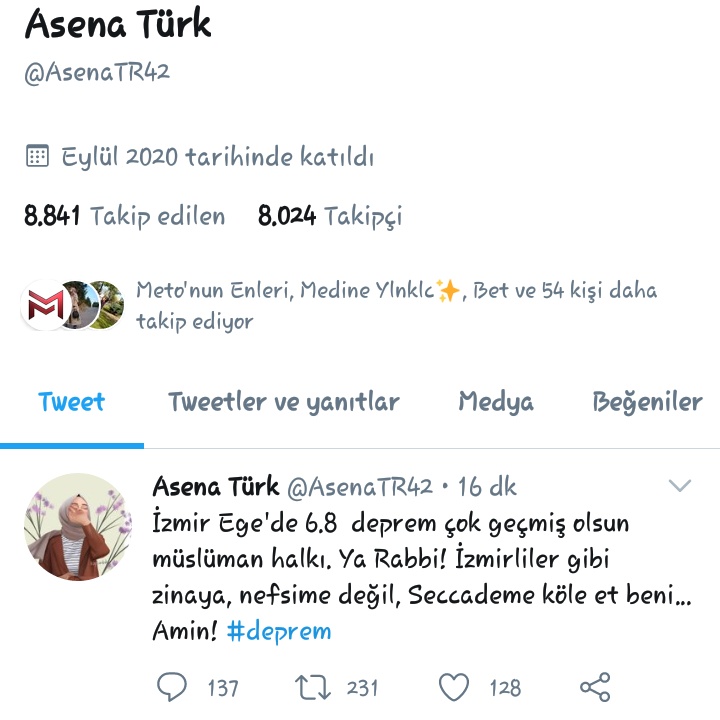Vatandaşlar birer birer enkazdan kurtarılırken, bazı vatandaşlar da sosyal medyada iğrenç paylaşımlarda bulunmaya başladı. Twitter'da 'Asena Türk' kullanıcı adlı bir kadın, " İzmir Ege'de 6.8 büyüklüğünde deprem, çok geçmiş olsun müslüman halkı. Ya Rabbi! İzmiriler gibi zinaya, nefsime değil seccademe köle et beni. Amin!" paylaşımda bulundu. Paylaşımın ardından büyük tepki toplayan kadın, Twitter hesabını kapattı.